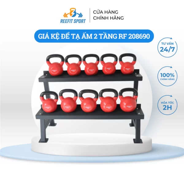 – Giá kệ để tạ ấm 2 tầng để lưu trữ các tạ ấm một cách gọn gàng và tiện lợi trong phòng tập gym hoặc phòng thể dục tại nhà.