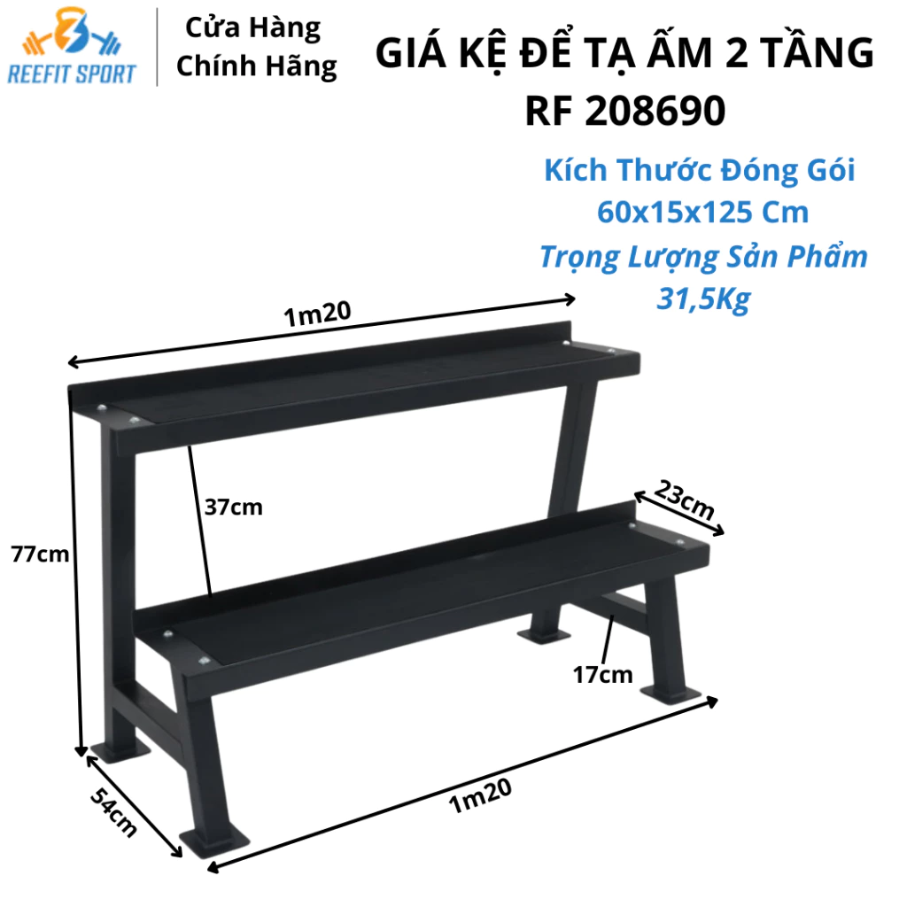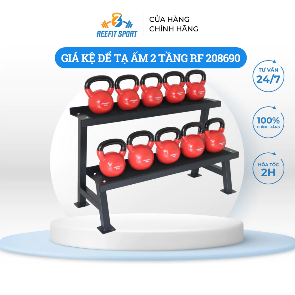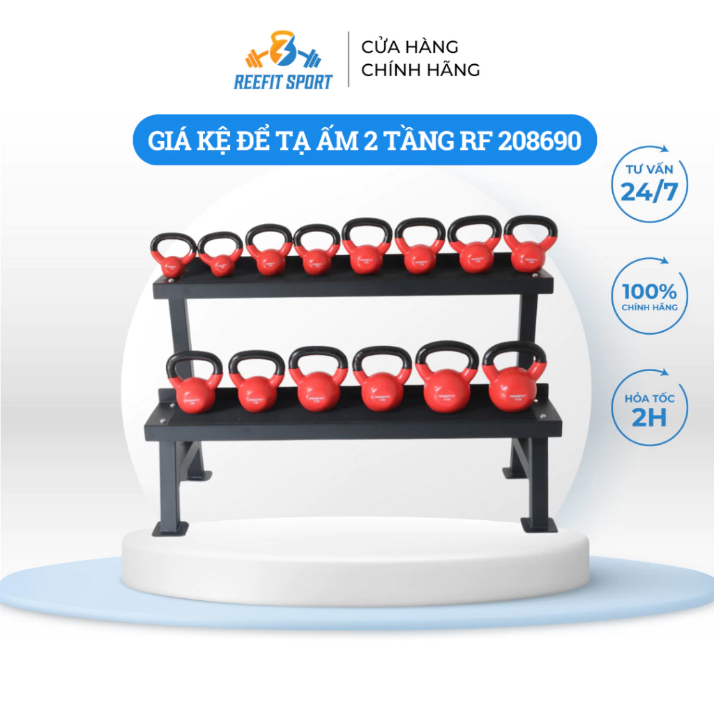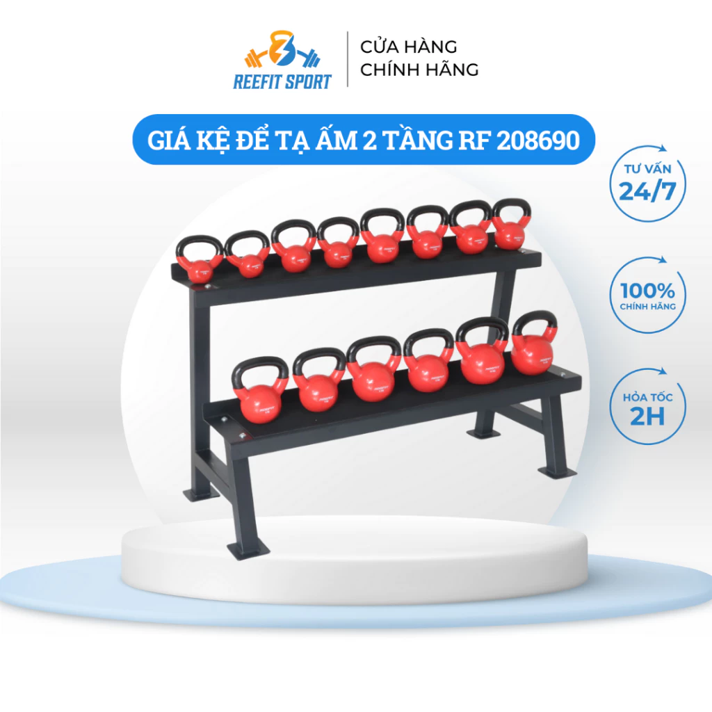 – Giá kệ để tạ ấm 2 tầng để lưu trữ các tạ ấm một cách gọn gàng và tiện lợi trong phòng tập gym hoặc phòng thể dục tại nhà.