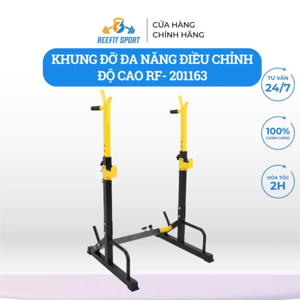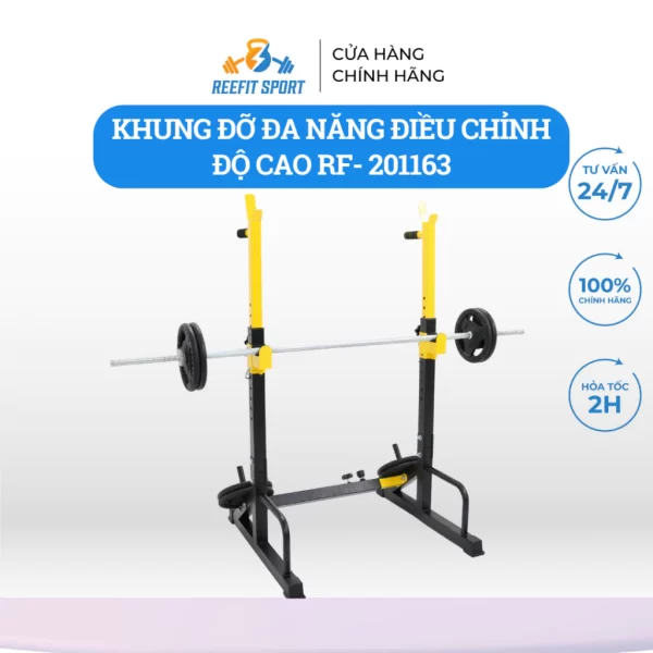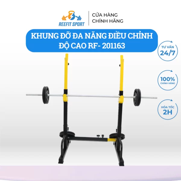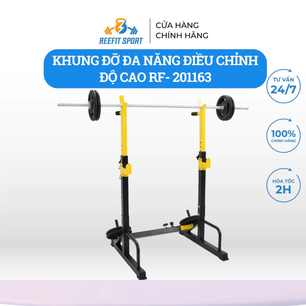 Khung giá kệ đỡ thanh đòn tạ điều chỉnh là một phụ kiện quan trọng trong tập luyện với tạ, giúp tối ưu hóa buổi tập và cung cấp nhiều lợi ích. Dưới đây là một số công dụng chính của giá đỡ tạ điều chỉnh: