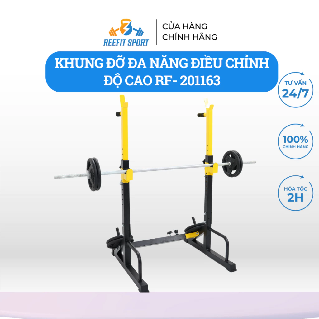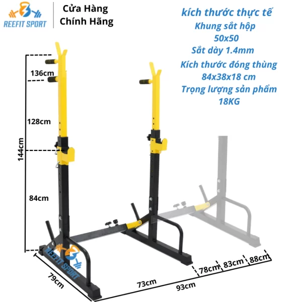 - Cho phép người tập dễ dàng đặt và cất tạ, tạo điều kiện thuận lợi cho việc thực hiện nhiều bài tập cơ bắp như đẩy đòn tạ, squats, lunges, và các bài tập khác.