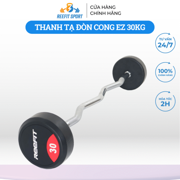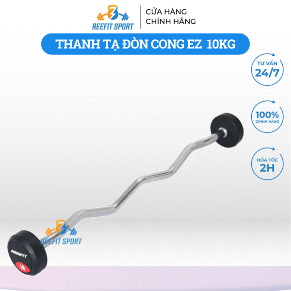 – Tạ đòn cong EZ liền bánh Refit là sản phẩm được thiết kế chuyên biệt cho các bài tập cơ tay trước (Biceps), tay sau (Triceps) và vai.