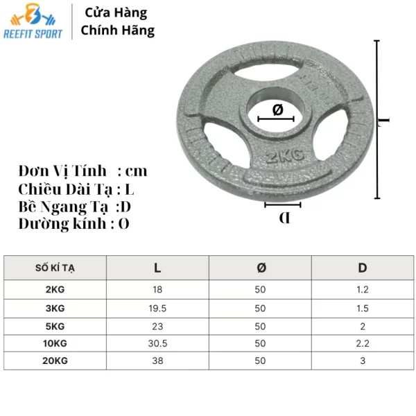 – Trọng lượng: 2kg, 3kg, 5kg, 10kg, và 20kg .