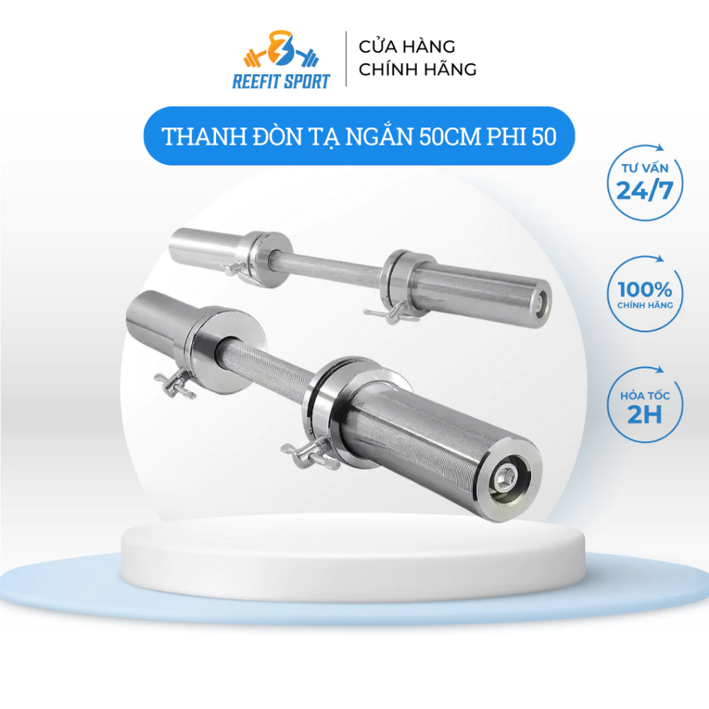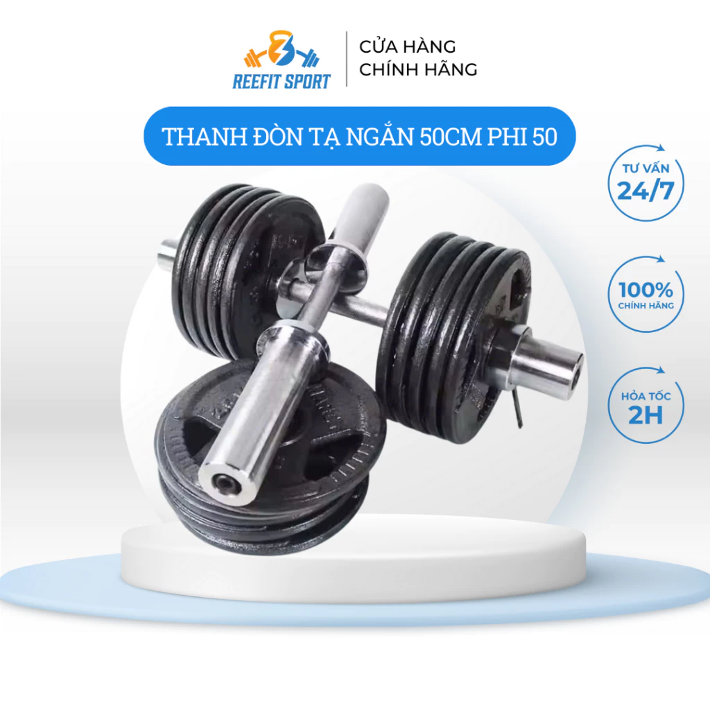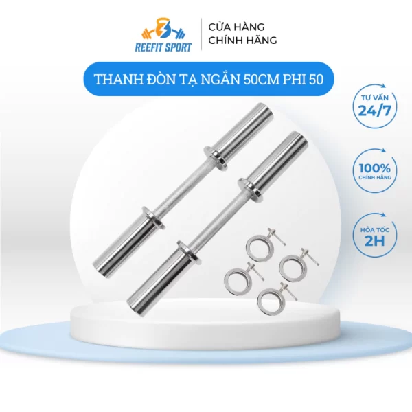 – Kích thước: Chiều dài tổng thể của đòn tạ 50cm