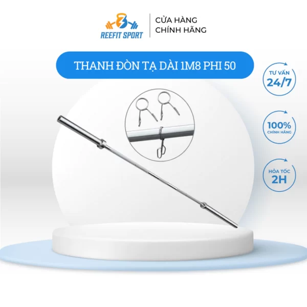 – Thanh đòn tạ phi 50 thiết kế, phần tay cầm có nhám, tăng độ bám, các đòn dài có chia khoảng cách vị trí nhớ khi cầm, có kẹp giữ bánh tạ đi kèm.