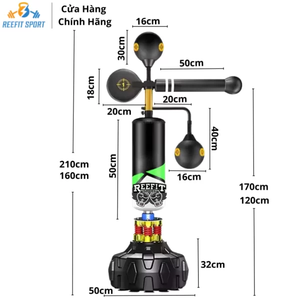 – Trụ tập đấm boxing có chiều cao: 160cm – 210cm