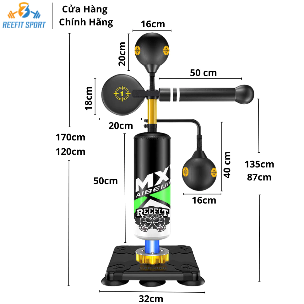– Trụ tập đấm boxing có chiều cao: 120cm – 170cm