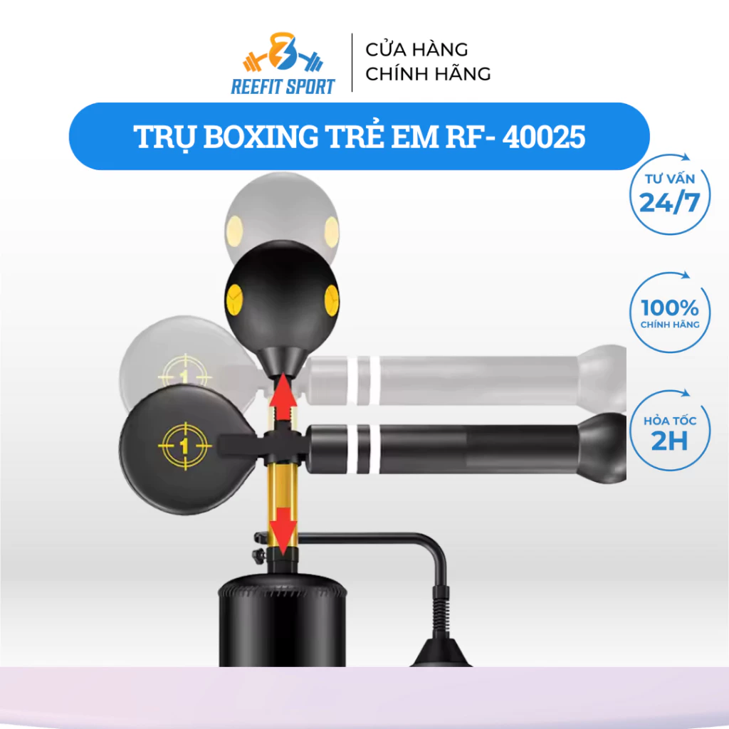 Trụ đấm bốc boxing 360 độ RF- 40025 là dụng cụ võ thuật sử dụng khá phổ biến trong các môn võ thuật như Boxing, MMA, Muay Thái… Hôm nay, Phúc Thành Sport xin giới thiệu đến các bạn tính năng và công dụng của trụ đấm boxing RF- 40025 một mẫu trụ boxing phổ biến đang bán chạy số 1 trên thị trường hiện nay. là mẫu trụ hơi đấm rất phổ biến hiện nay, trụ boxing thiết kế chiều cao 120cm – 170cm, thân mềm phù hợp giúp tập luyện và rèn luyện sức khỏe cũng như tăng độ phản xạ khi thi đấu đối kháng.