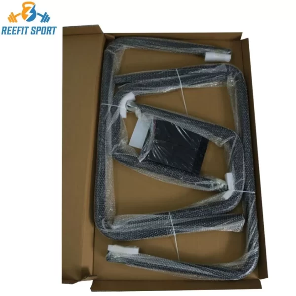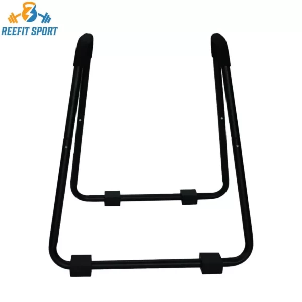 Xà kép RF911 được thiết kế chắc chắn, nhỏ gọn từ thép ống D34 cực dày và sơn tĩnh điện chống rỉ sét, bong tróc. Phần chân đế được bọc nhựa giúp tăng độ ma sát, phần tay cầm khi tập bọc da PU.